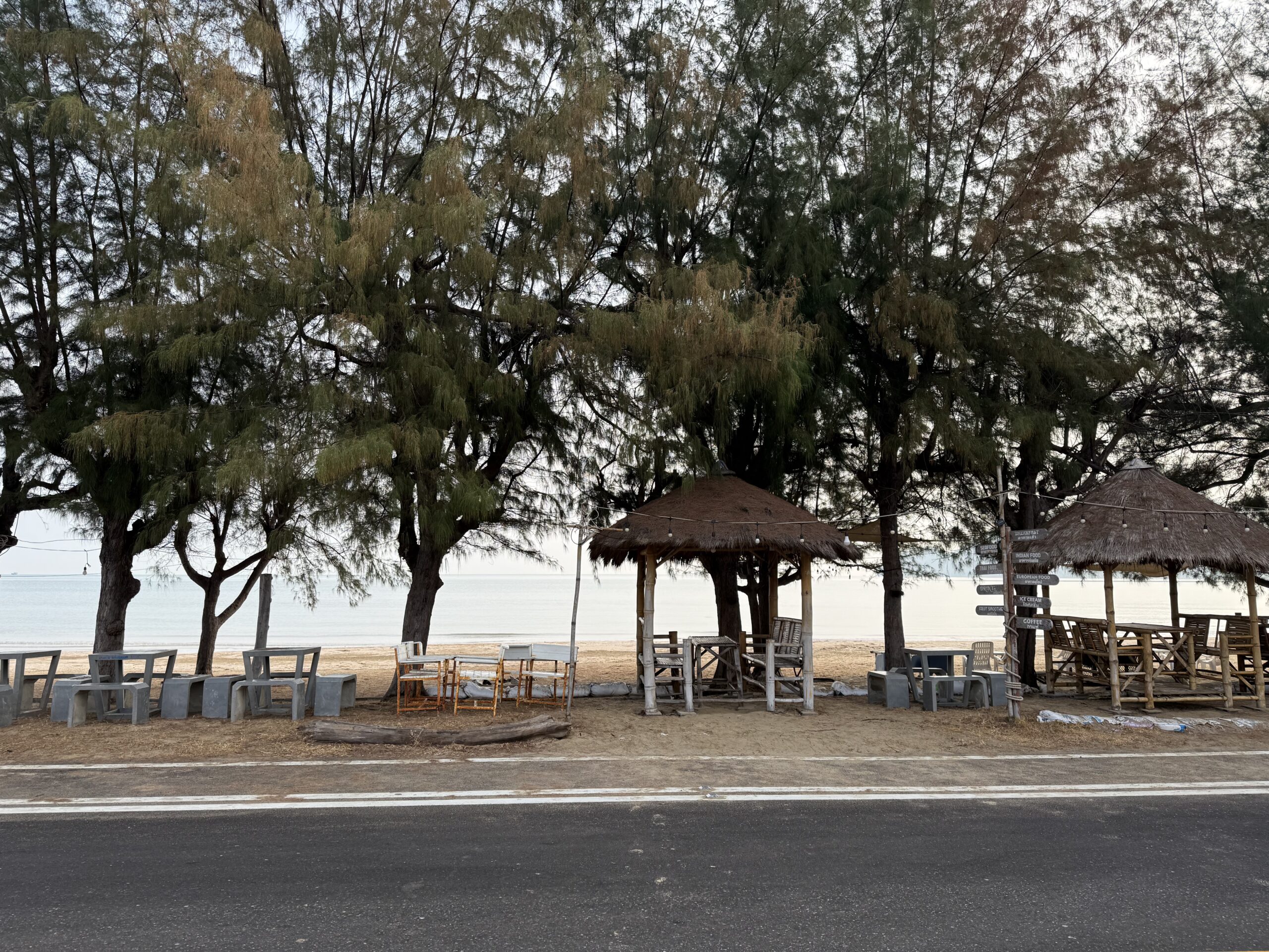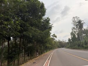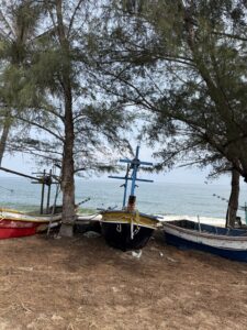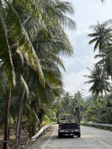 So gut wie möglich ohne Schnellstraße an der Küste entlang. Abseits der nicht vorhanden Touristenwege 😀 Fischerdörfer, Palmen-Plantagen, leeren Stränden, leeren Hotels, … Hier ist der internationale Tourismus noch nicht angekommen. Man erkennt, dass es Versuche gab,- aber es scheint, als seien diese irgendwie gescheitert.