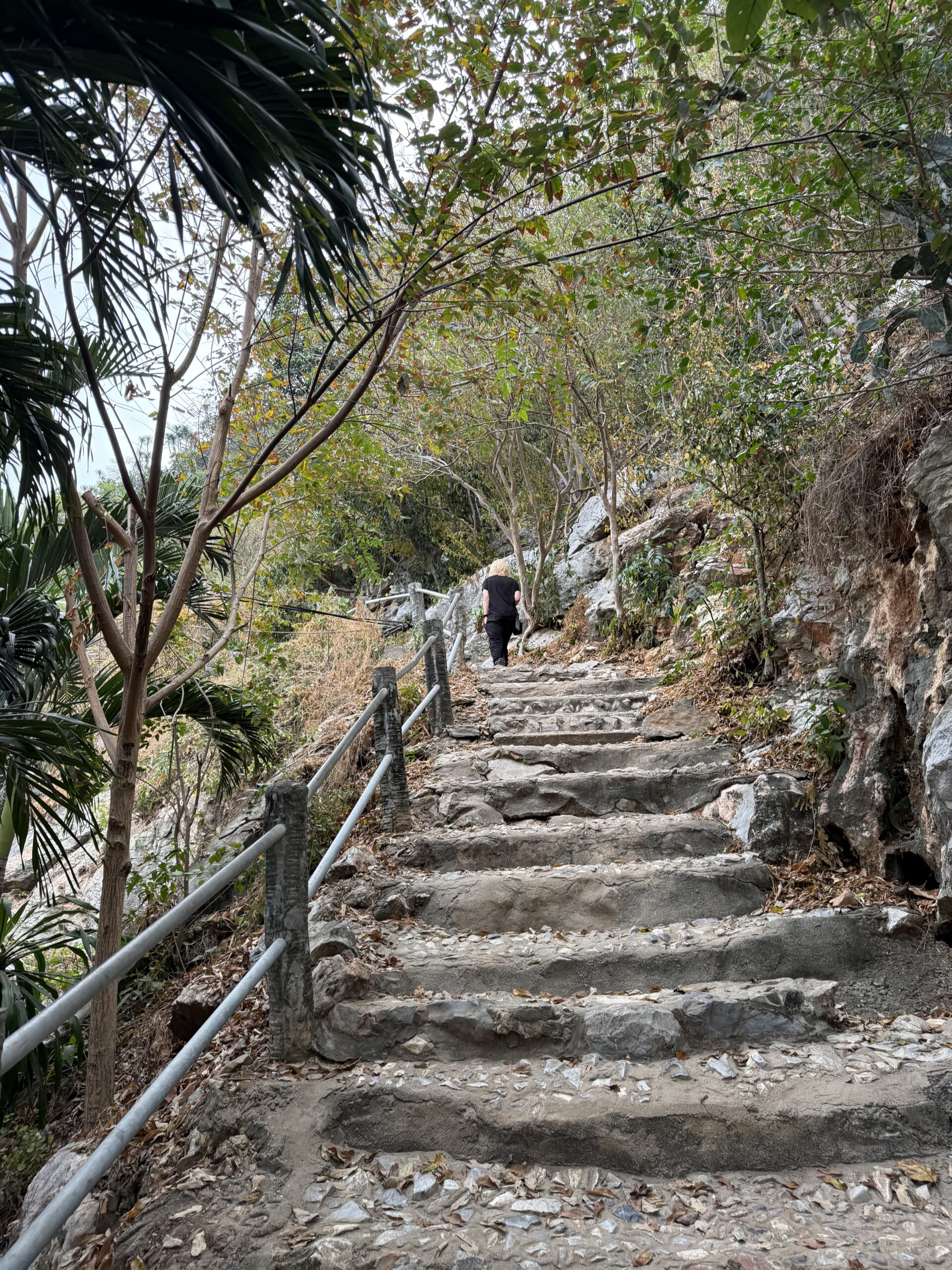 Nach gut einer Stunde verweilen und 1000 Fotos und immer mehr Besuchern, haben wir uns auf den Rückweg begeben. Kurze Stärkung am Strand und dann ins Longtailboot. Einen Auf- und Abstieg kann man sich nämlich via Boot sparen und vom Meer aus den Berg umfahren 😉