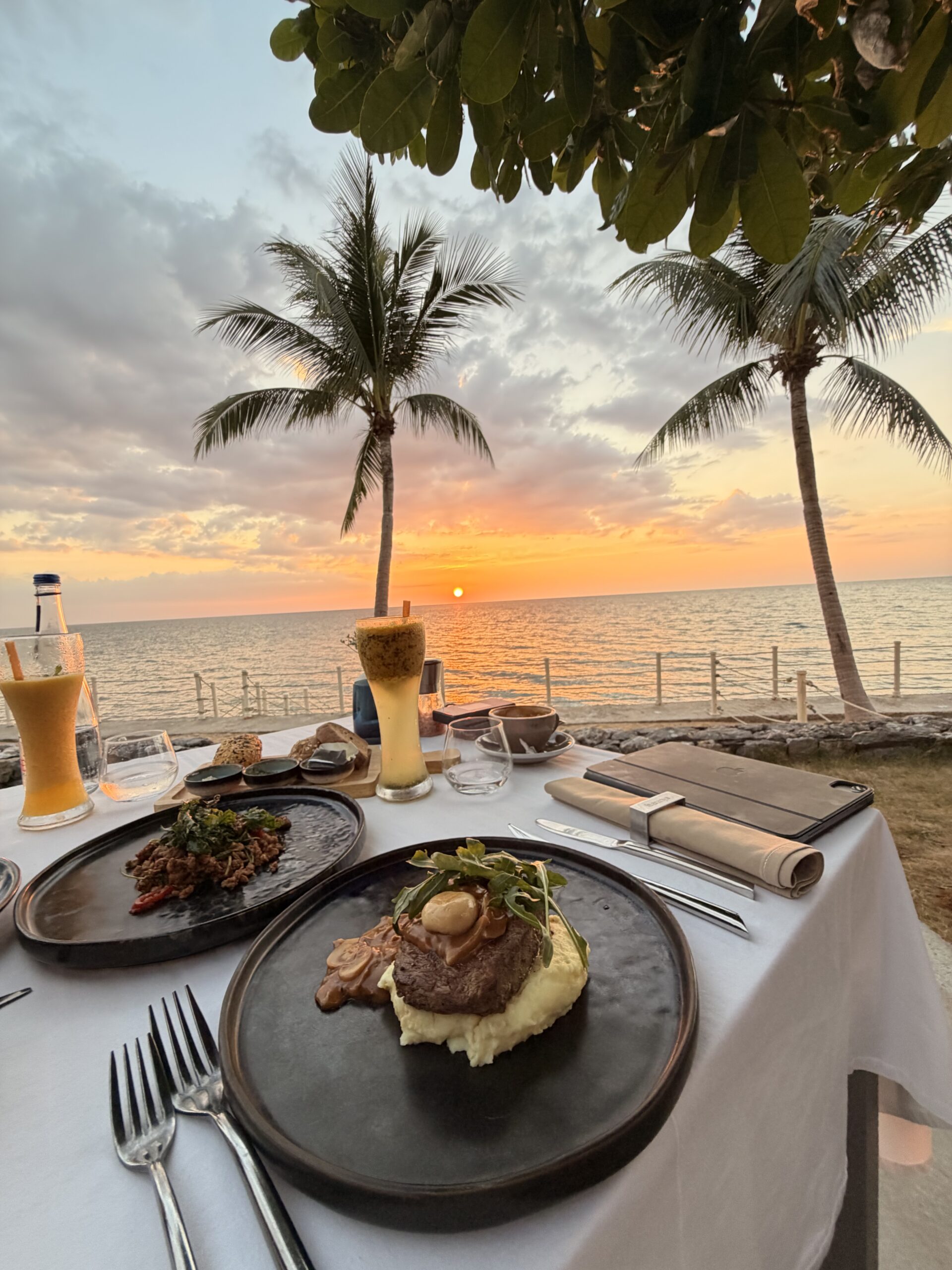 Zum Abschluss des gelungenen Tages sind wir nochmal schön in unser Lieblingsrestaurant – zum Sonnenuntergang. Unglaublich dass wir doch noch rechtzeitig da waren und nen Tisch in erster Reihe bekommen haben 🤩😎🥳