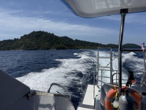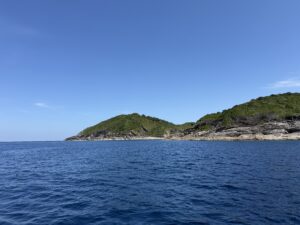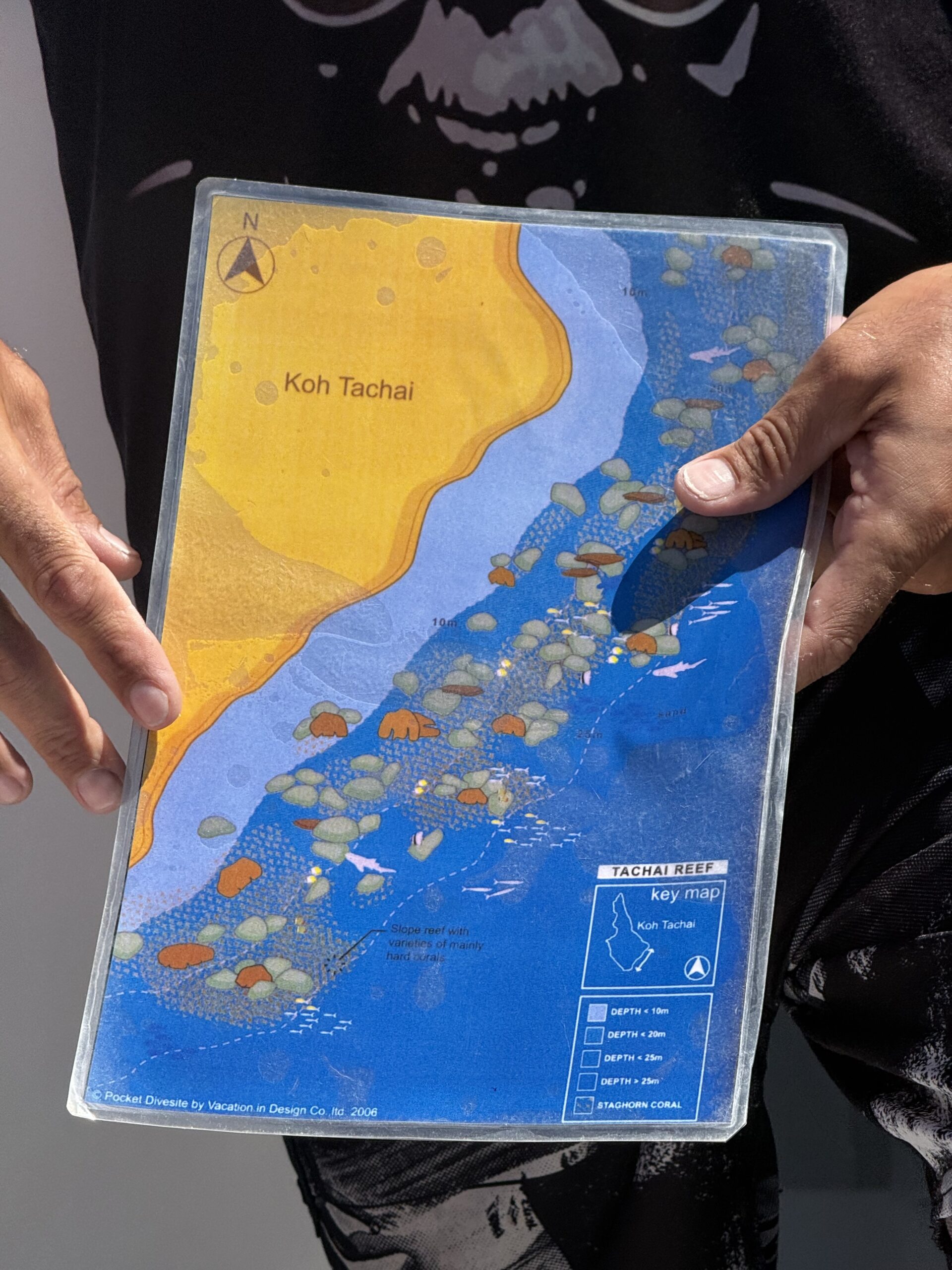Die Fahrt dauerte wieder ca. 1 Stunde 15 Minuten. Die See war aber ruhiger – pünktlich vor Ort und einer Insel (Koh Tachai) vorgelagert – somit ist der Platz geschützter – und allgemein war einfach schon weniger Wellengang. Damit war der Aufenthalt auf dem Boot wirklich angenehm und niemandem war schlecht 😅👍