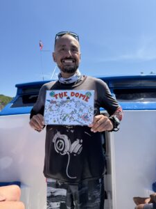 Der erste Tauchplatz „the Dome“ ist der Insel etwas vorgelagert. Man springt ins Wasser, schwimmt zu einer Boje und geht dort am Seil runter. Easy. Unten angekommen: Fischsuppe!