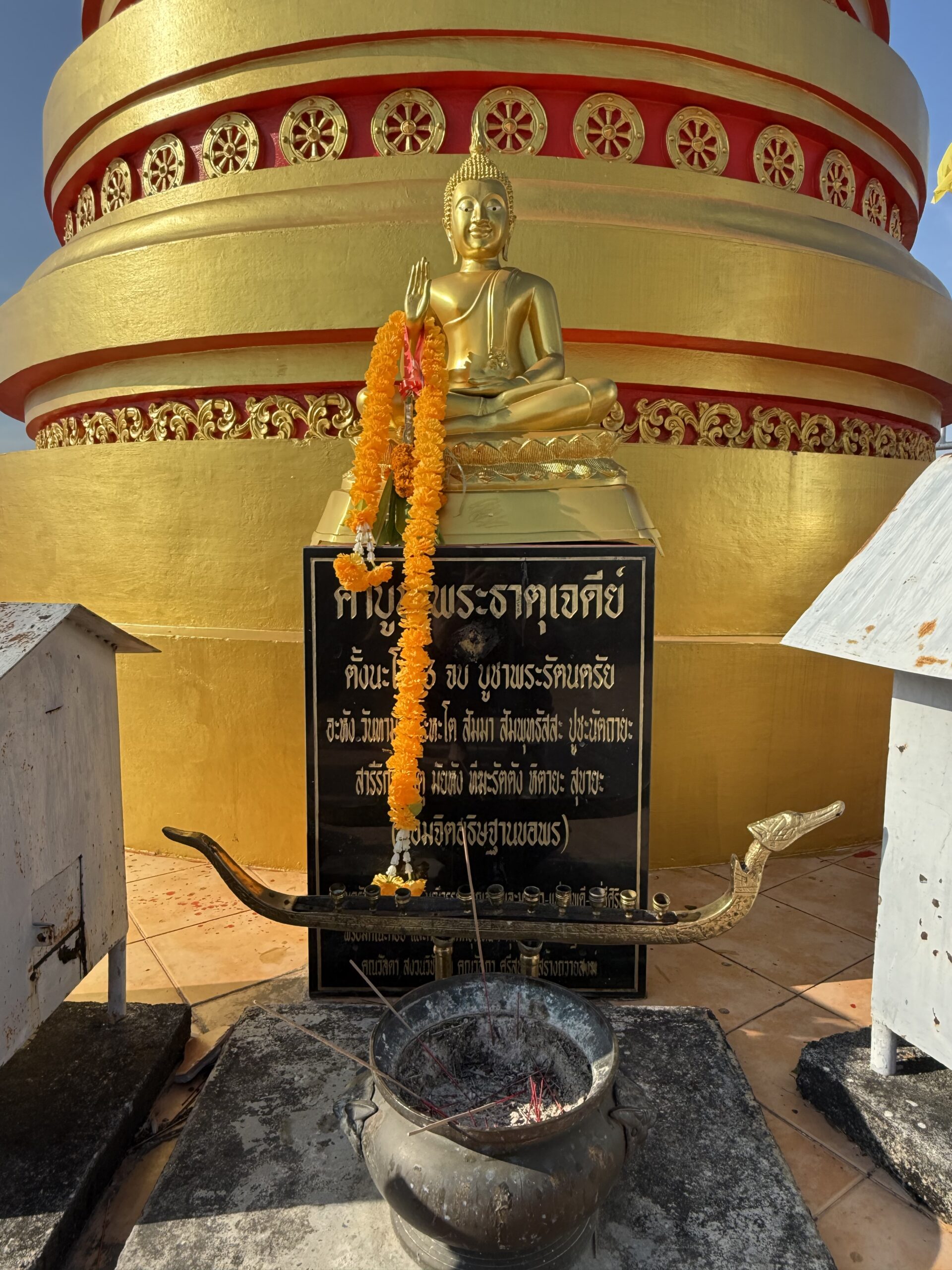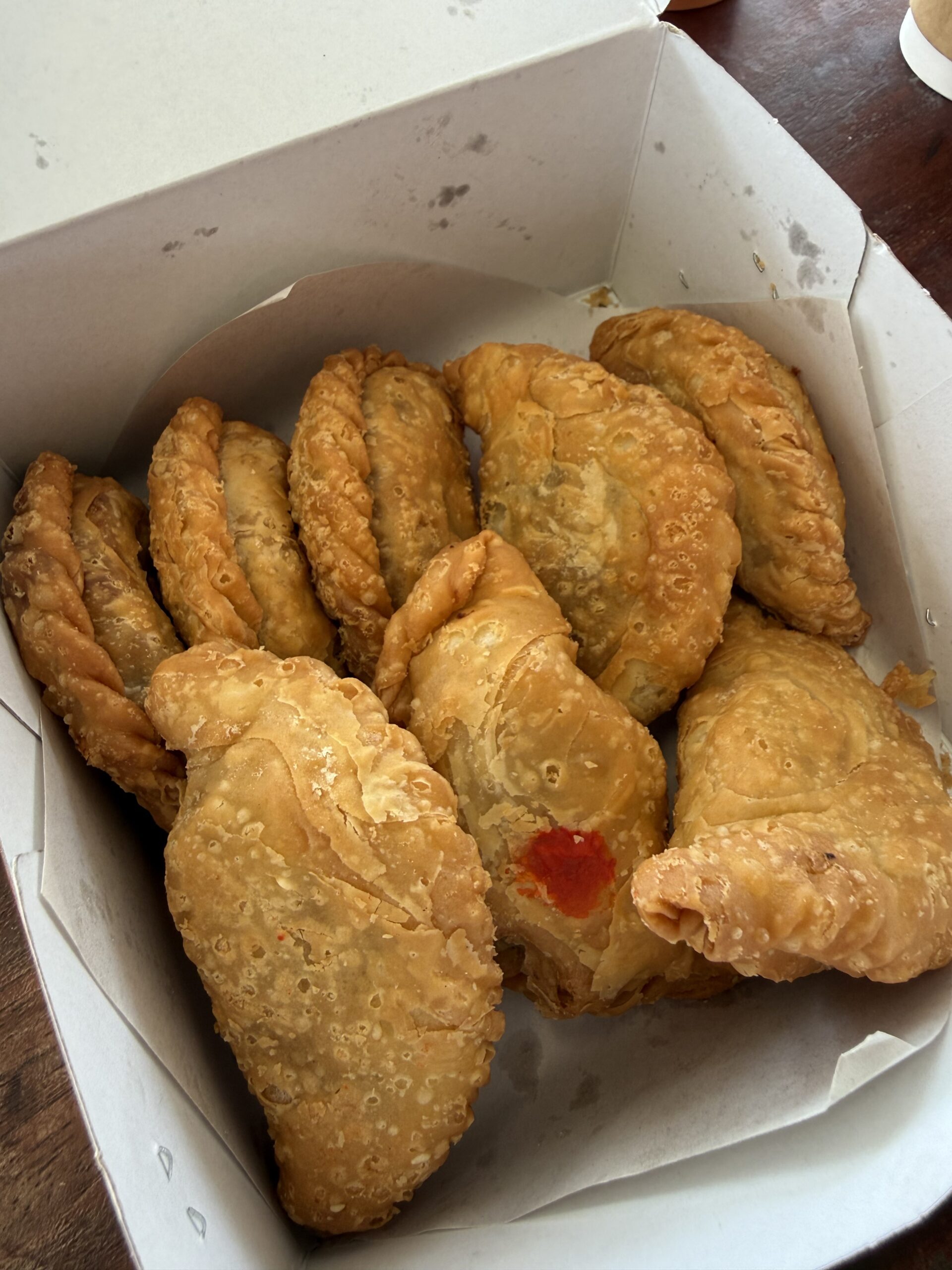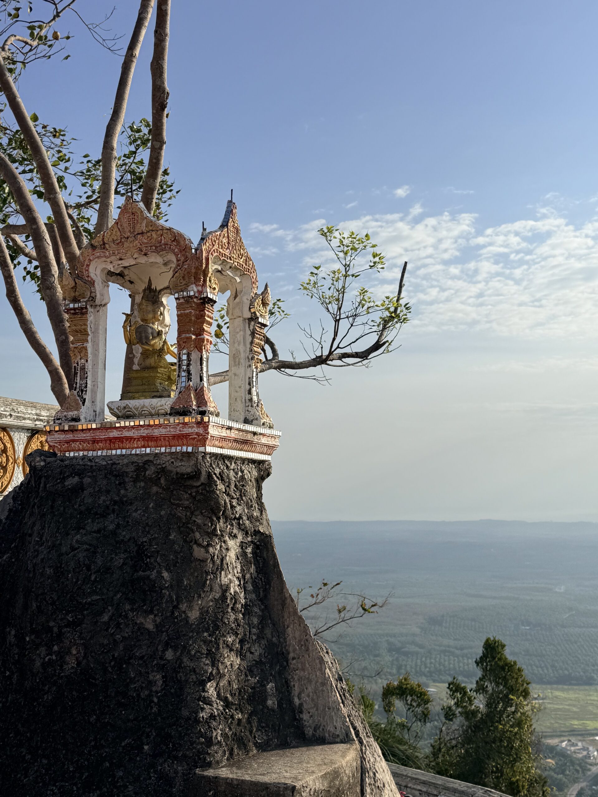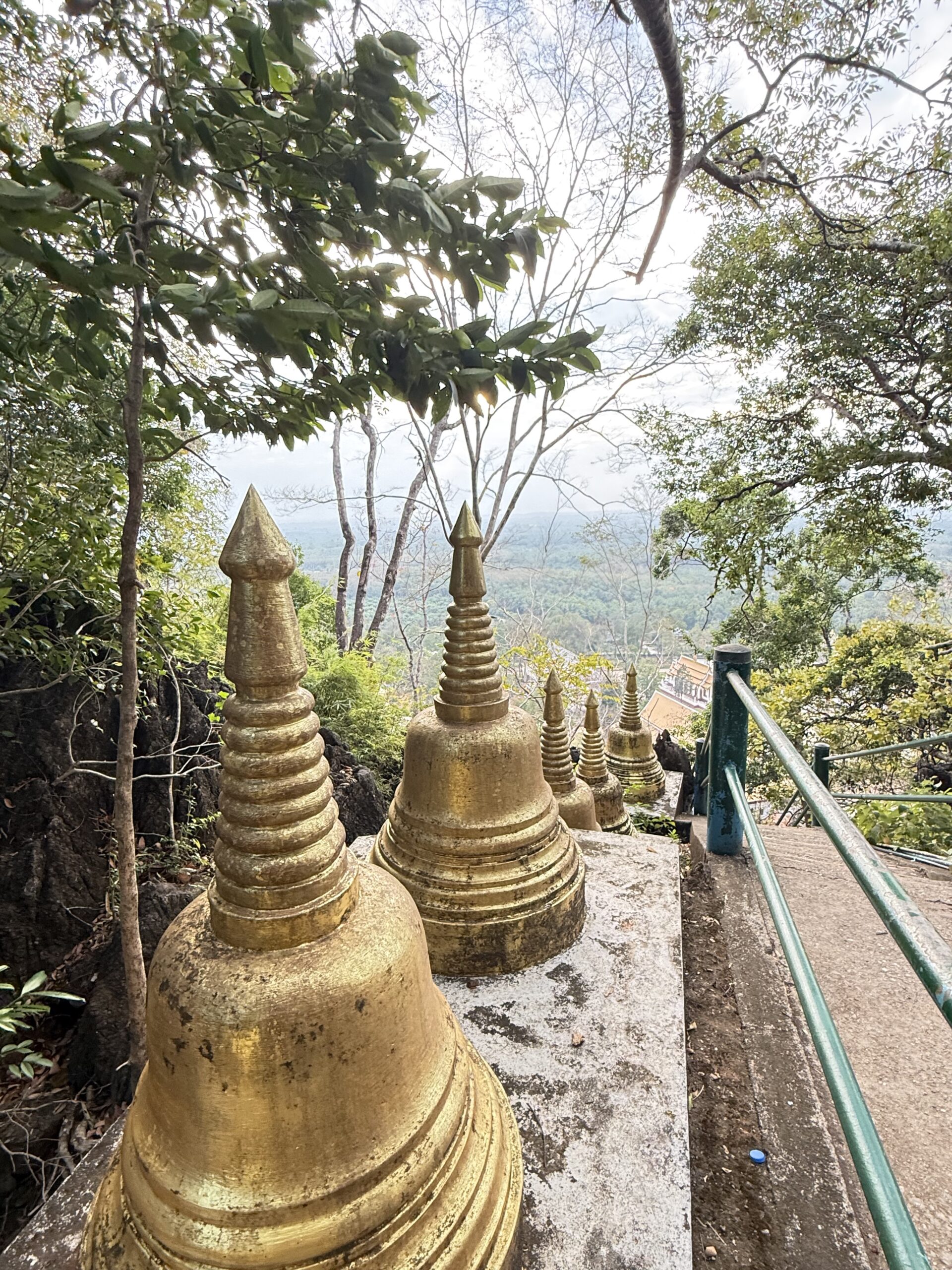 Unten noch kurz in den Wat rein geschaut und danach erstmal 25km gefahren, denn wer 1.260 Stufen hochläuft und wieder runter, darf auch frittierte Teigtaschen essen. Das ist quasi ein Naturgesetz. Denn gestern hat uns eine Thai am Marktstand verraten, wo es die besten Karipap‘S gibt ( frittierte Teigtaschen).