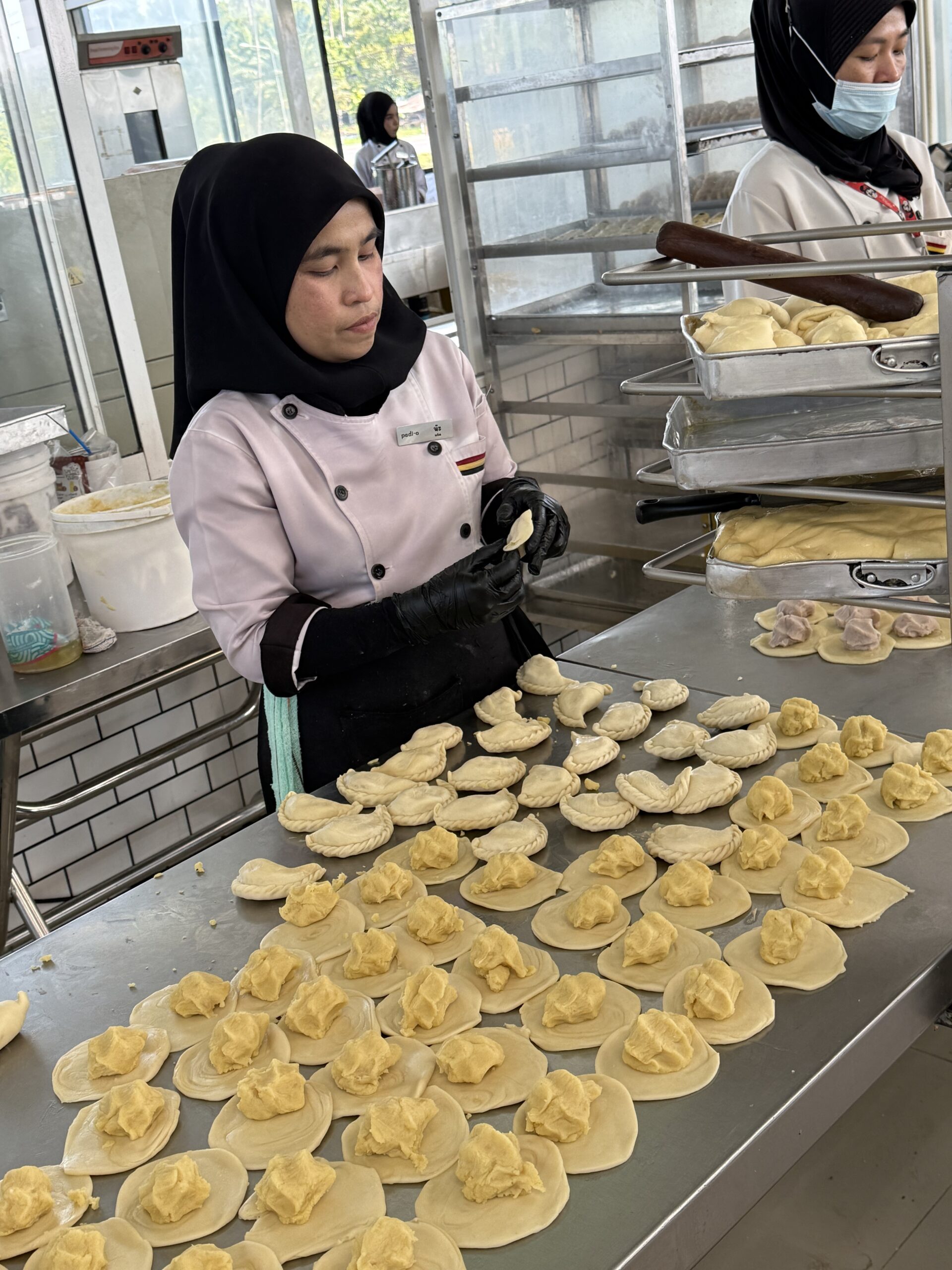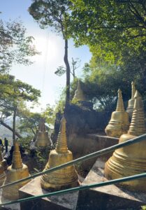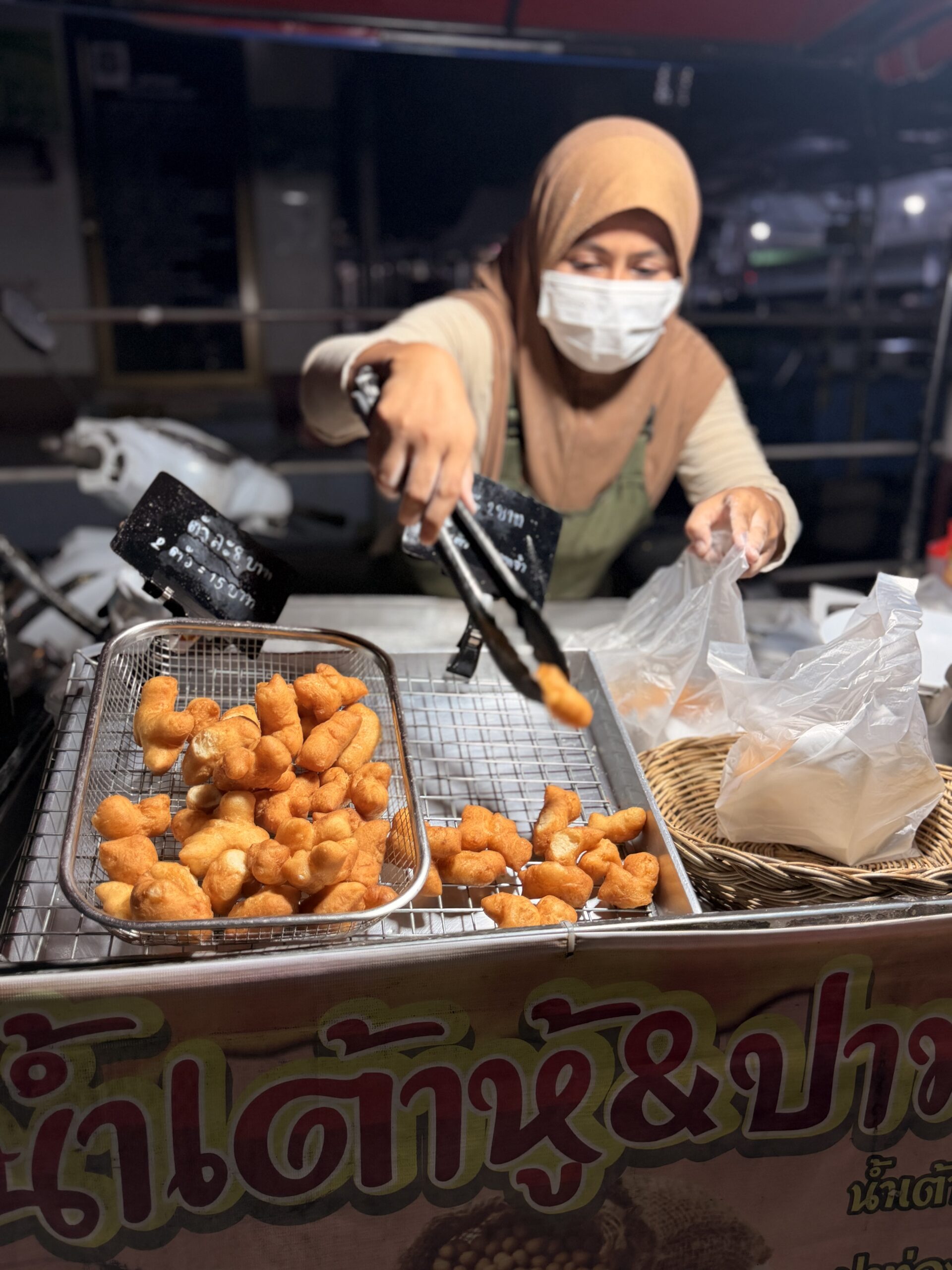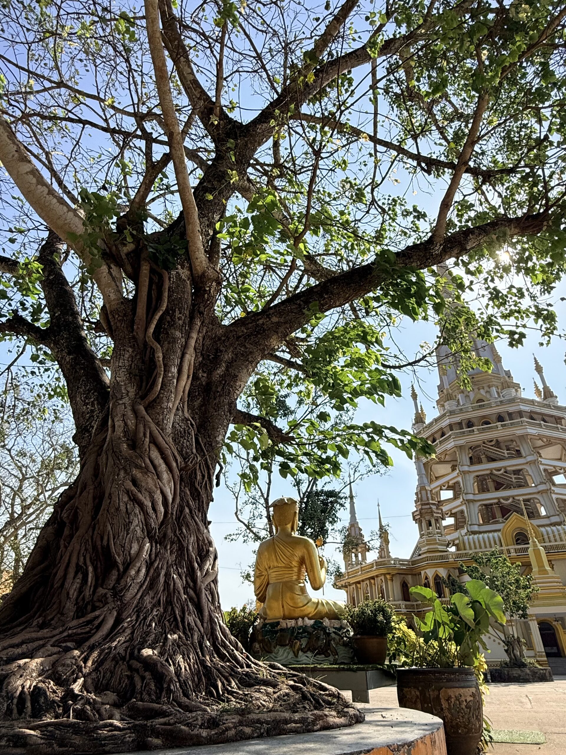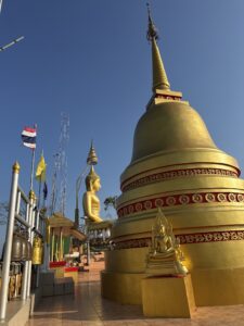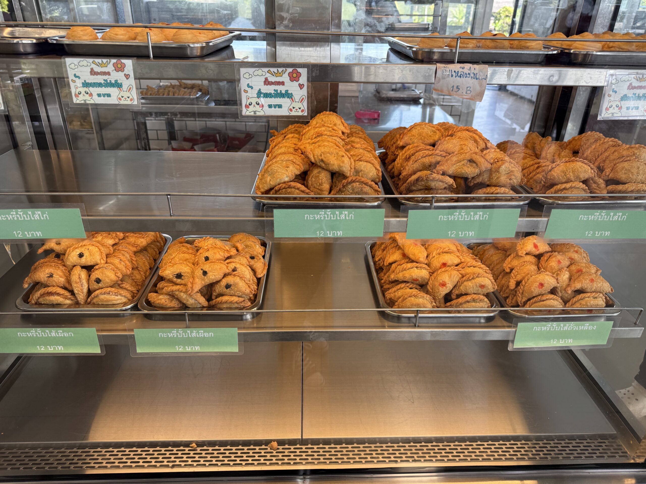 Unten noch kurz in den Wat rein geschaut und danach erstmal 25km gefahren, denn wer 1.260 Stufen hochläuft und wieder runter, darf auch frittierte Teigtaschen essen. Das ist quasi ein Naturgesetz. Denn gestern hat uns eine Thai am Marktstand verraten, wo es die besten Karipap‘S gibt ( frittierte Teigtaschen).
