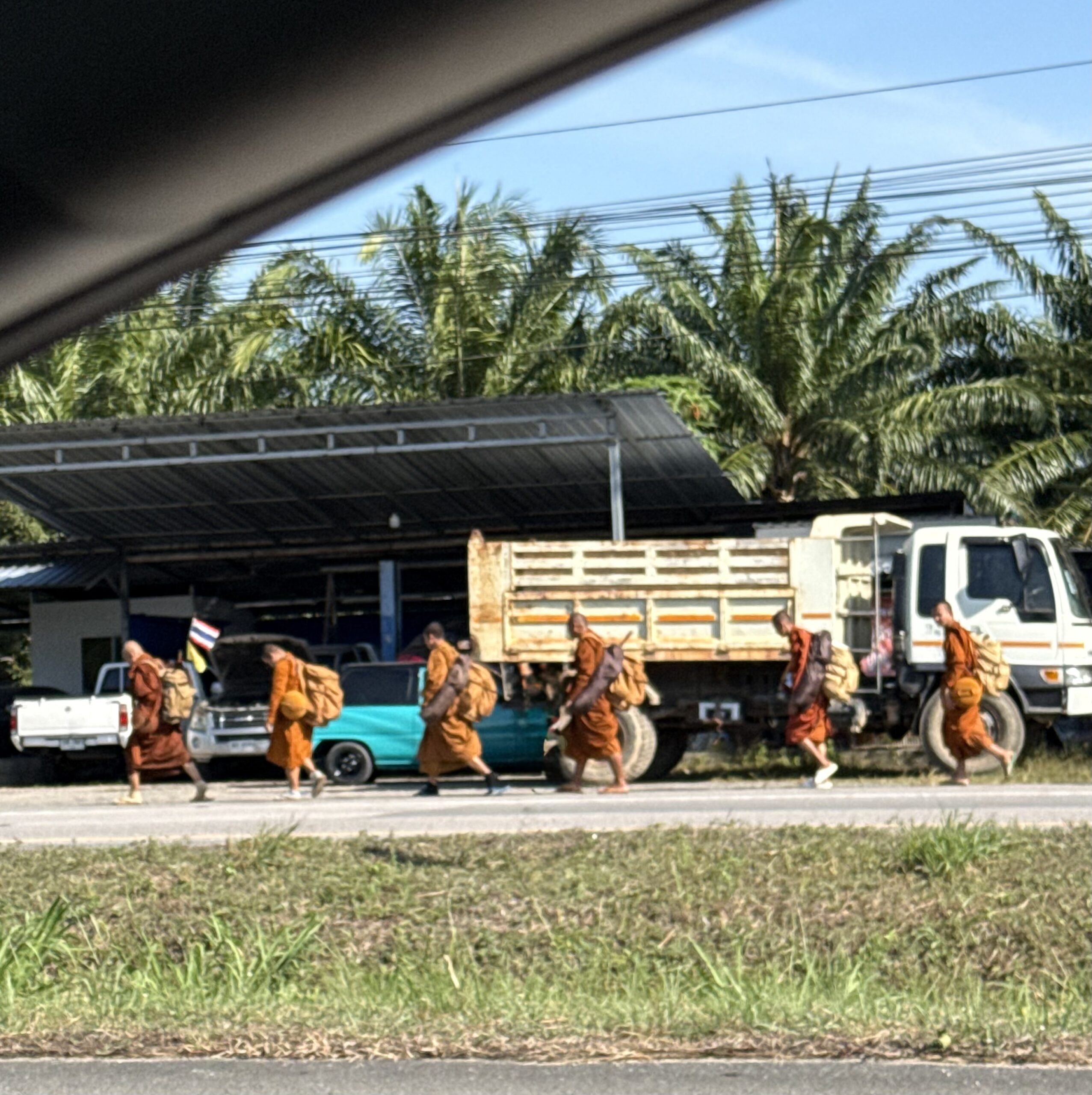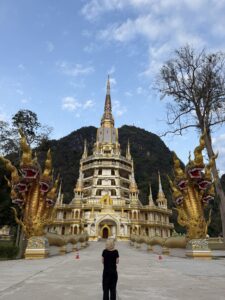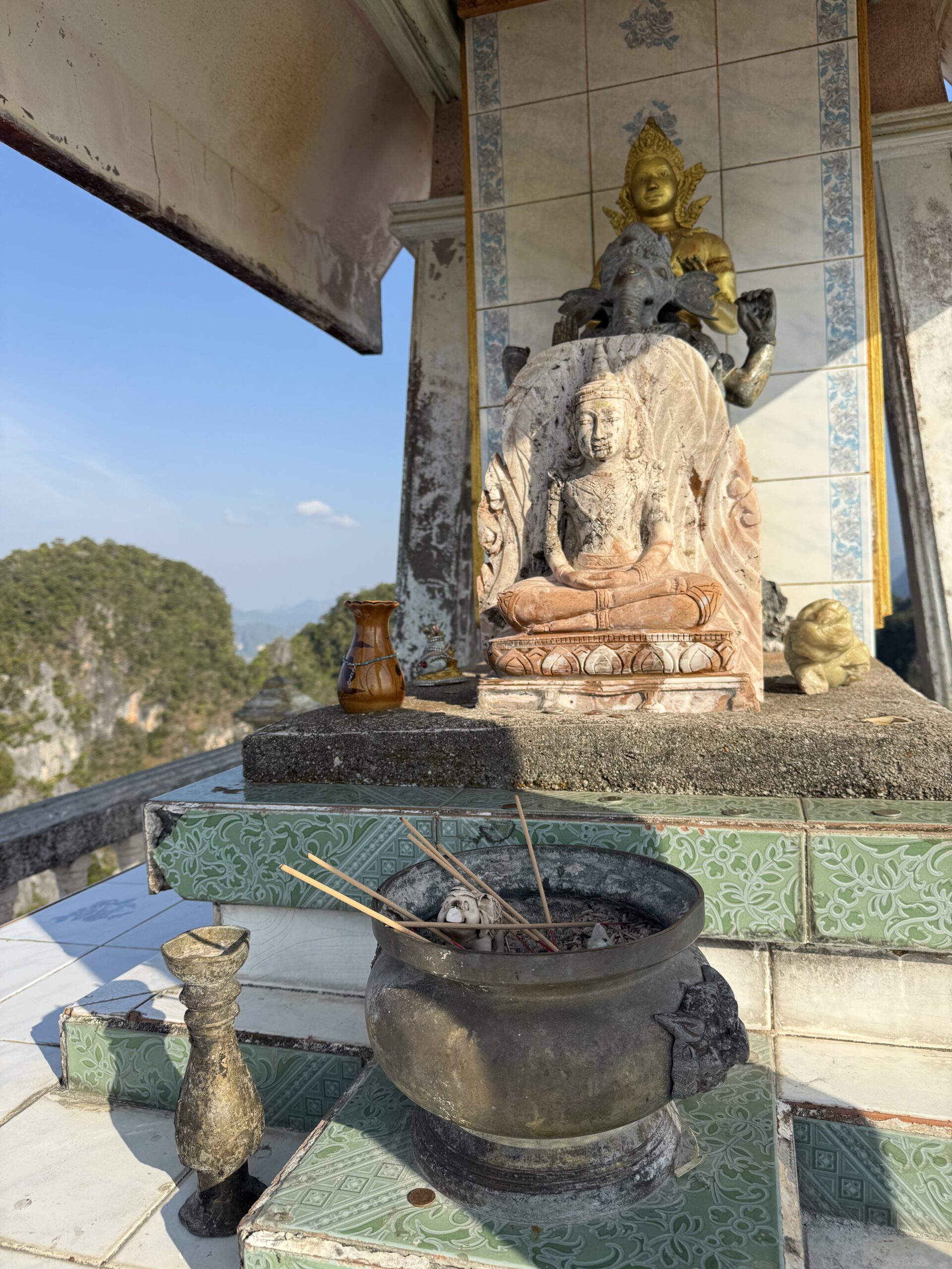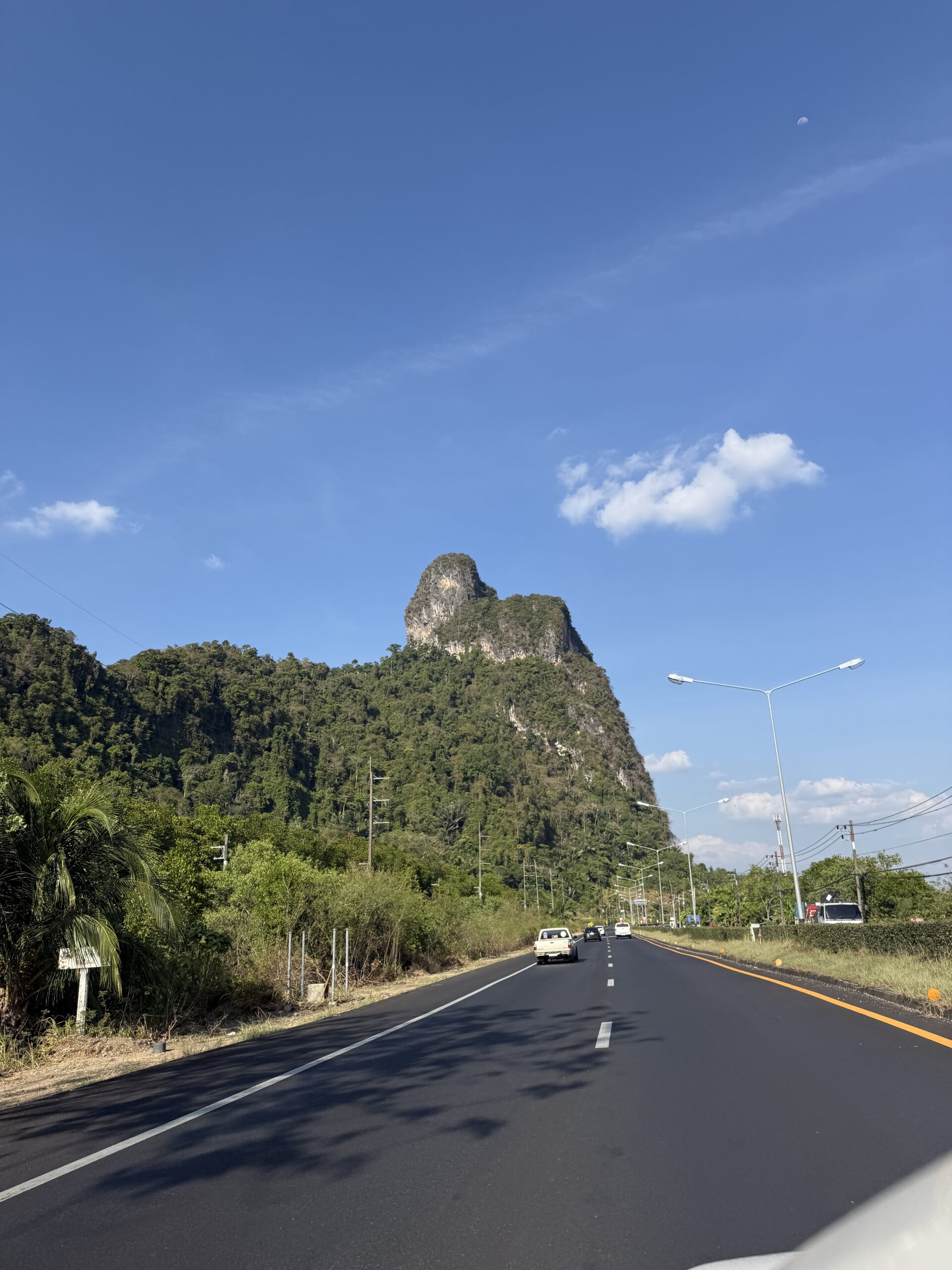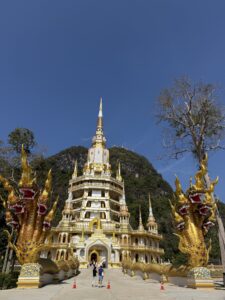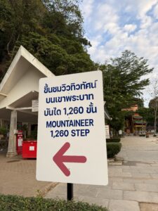 Weil wir zum Wat Tham Suea – zur Tiger Cave Tempelanlage in Krabi wollten. Und weil man uns gesagt hat: Wenn ihr das macht, dann bitte früh. Sehr früh. Wegen der Hitze.