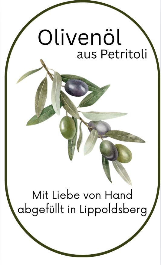 Echtes Olivenöl aus Petritoli Unser Olivenöl stammt von einem traditionsreichen Familienbetrieb in Petritoli. Dort werden die Oliven von Hand geerntet und schonend kaltgepresst.